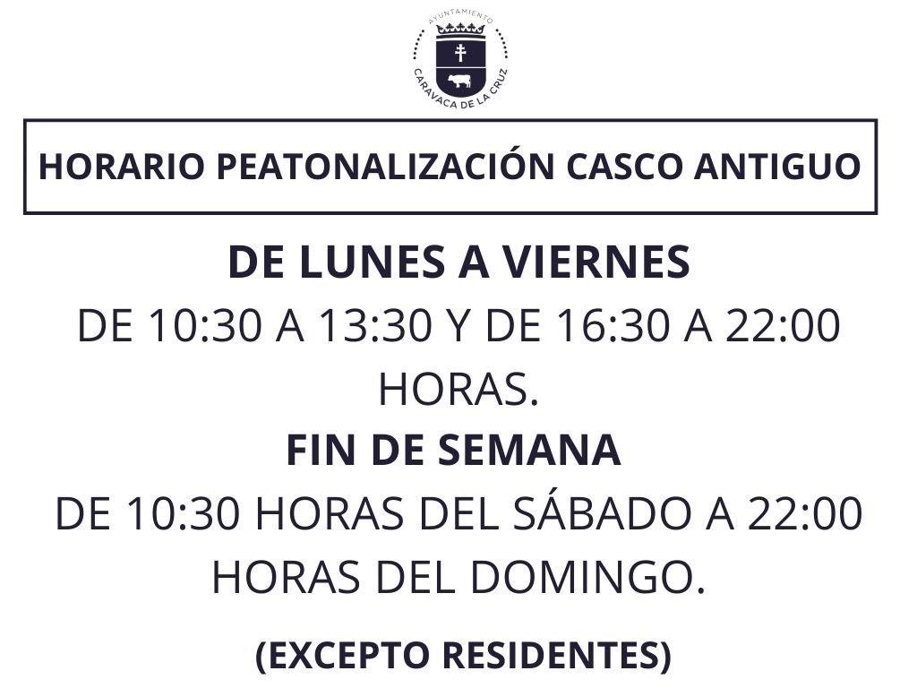 Adjuntamos el horario actualizado de la zona peatonalizada del casco antiguo.