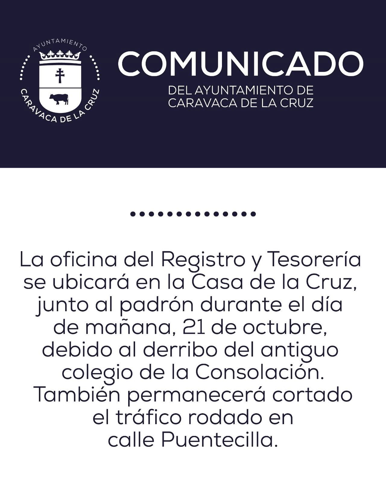 ℹ️ Mañana, martes 21, con motivo de los trabajos de derribo del Colegio de la Consolación, el tráfico rodado y los servicios municipales de la calle Puentecilla permanecerán cerrados al público.